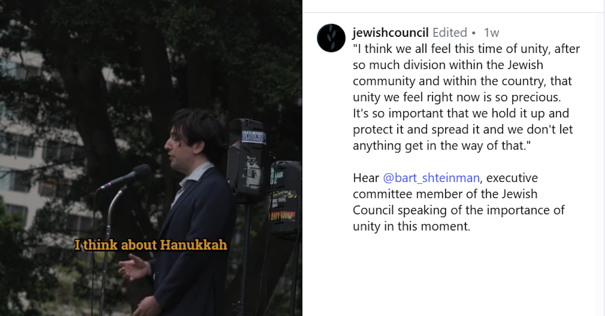 Green Left recently published a story about the Jewish Council-hosted Chanukah vigil titled “Naarm community unites for Chanukah vigil”. Below